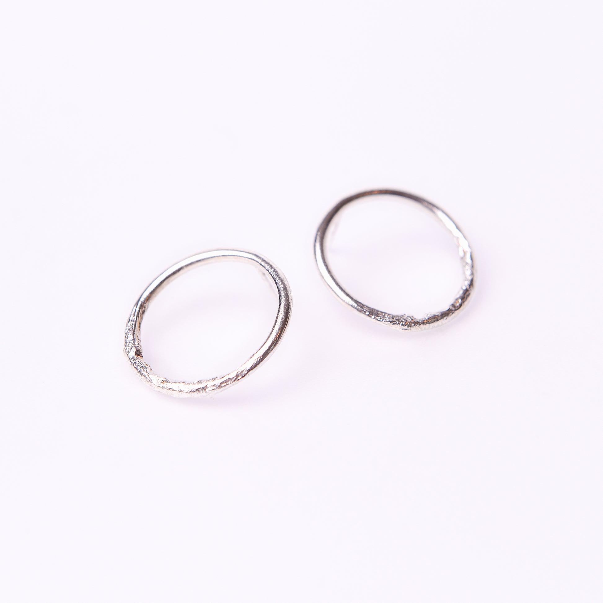 These unique round stud earrings are crafted using an innovative technique, with the circular shape symbolizing perfection and unity. Designer Zsófia Gizella Biró aimed to express that perfection and imperfection coexist through a spontaneous distressing technique.