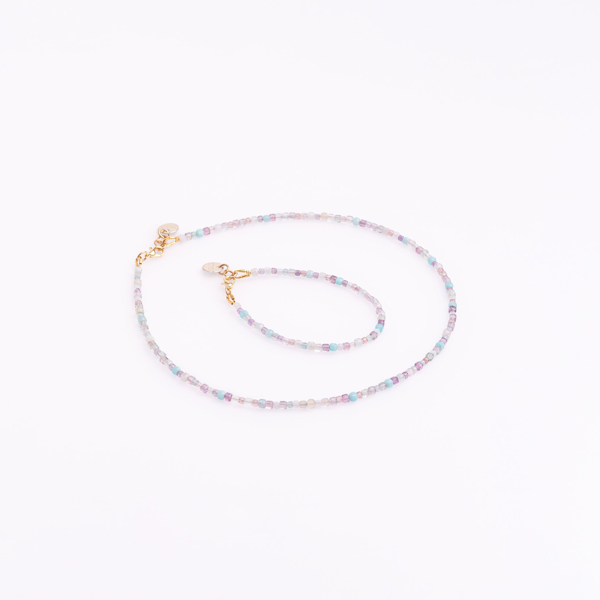 The Dark Essential Collection brings a vibrant, playful twist to elegant jewelry, combining rich dark stones with the calming hues of amazonite and fluorite. This unique design features a beautiful mix of stones complemented by the soft, refreshing tones of amazonite and the calming, translucent shades of fluorite. The necklace creates a striking contrast of colors and energies, offering a sophisticated yet whimsical feel.