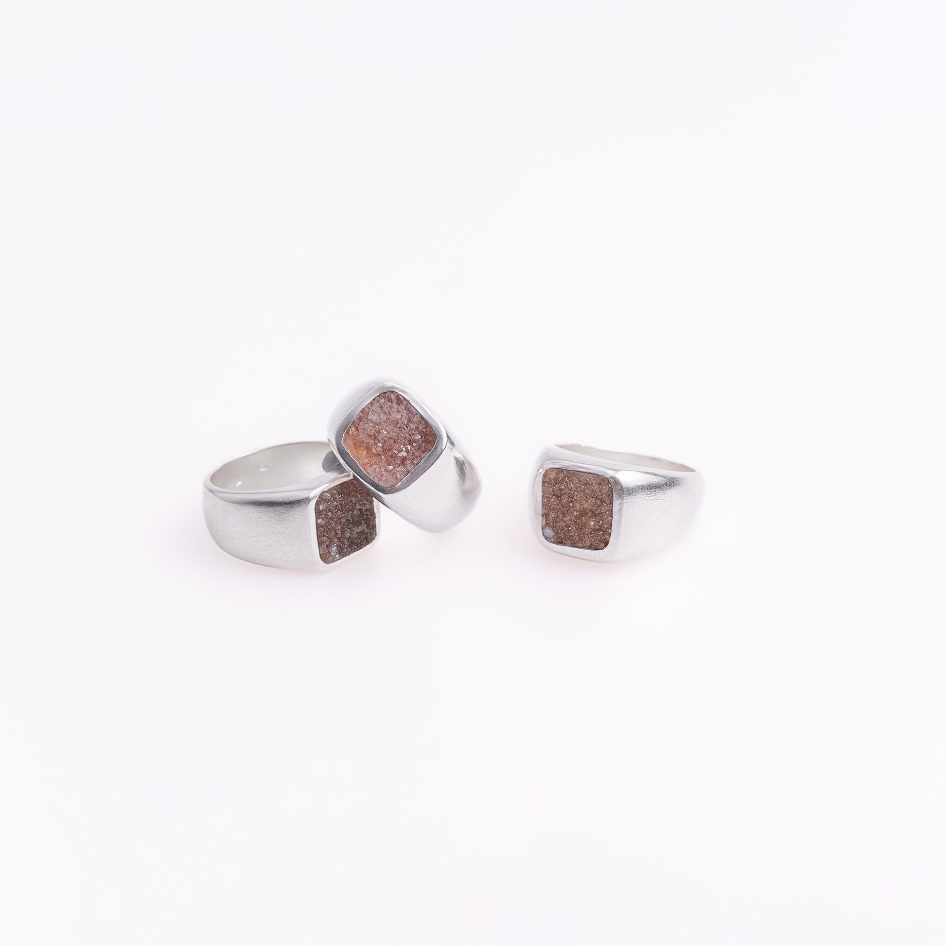 The Metamorphosis signet ring embodies transformation and strength, featuring a striking Durza Achat stone at its center. Crafted from sterling silver, this bold piece represents a journey of change and evolution. The unique, organic shape of the Durza Achat adds depth and character, making each ring one-of-a-kind.