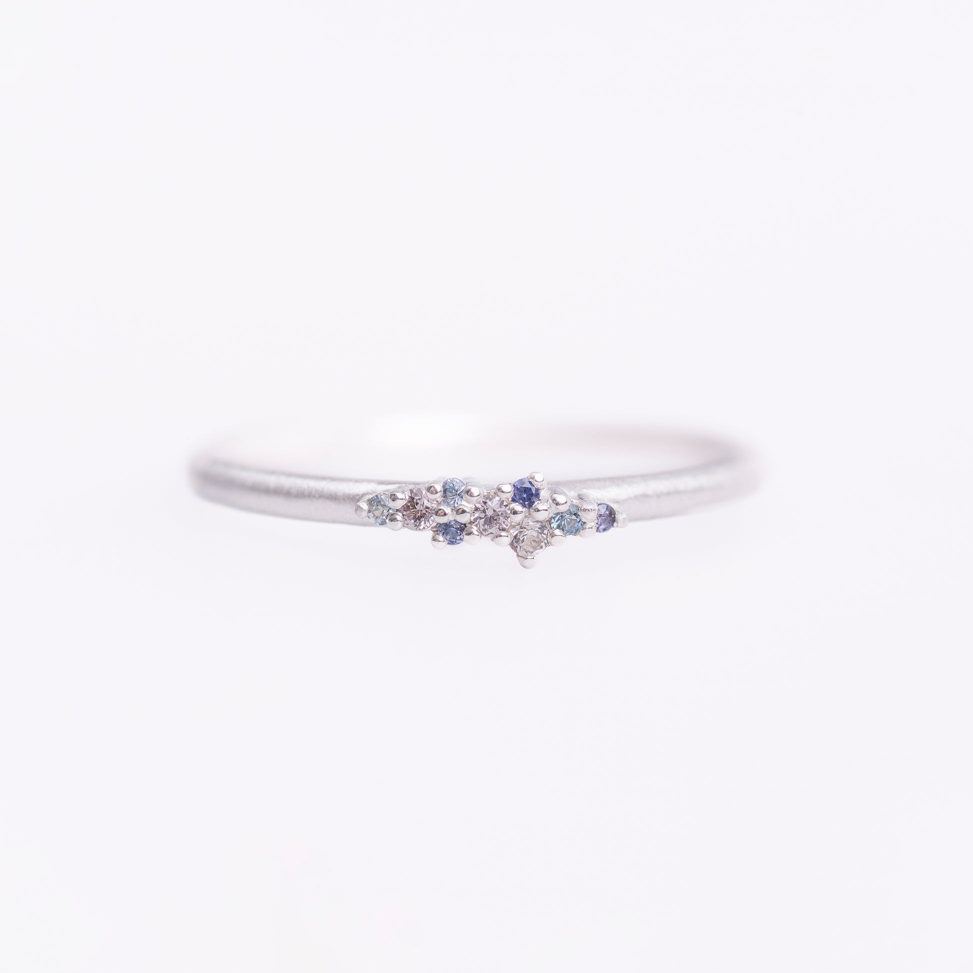 Introducing the Neel Ring – a striking sterling silver piece that combines vibrant hues with timeless elegance. This unique ring features an array of sapphires, set in two beautiful color options: one with a stunning gradient of blue shades, and the other showcasing playful, candy-colored sapphires in a spectrum of soft, cheerful tones. Each stone is carefully selected to create a harmonious blend of color and light, making this ring a true statement piece.