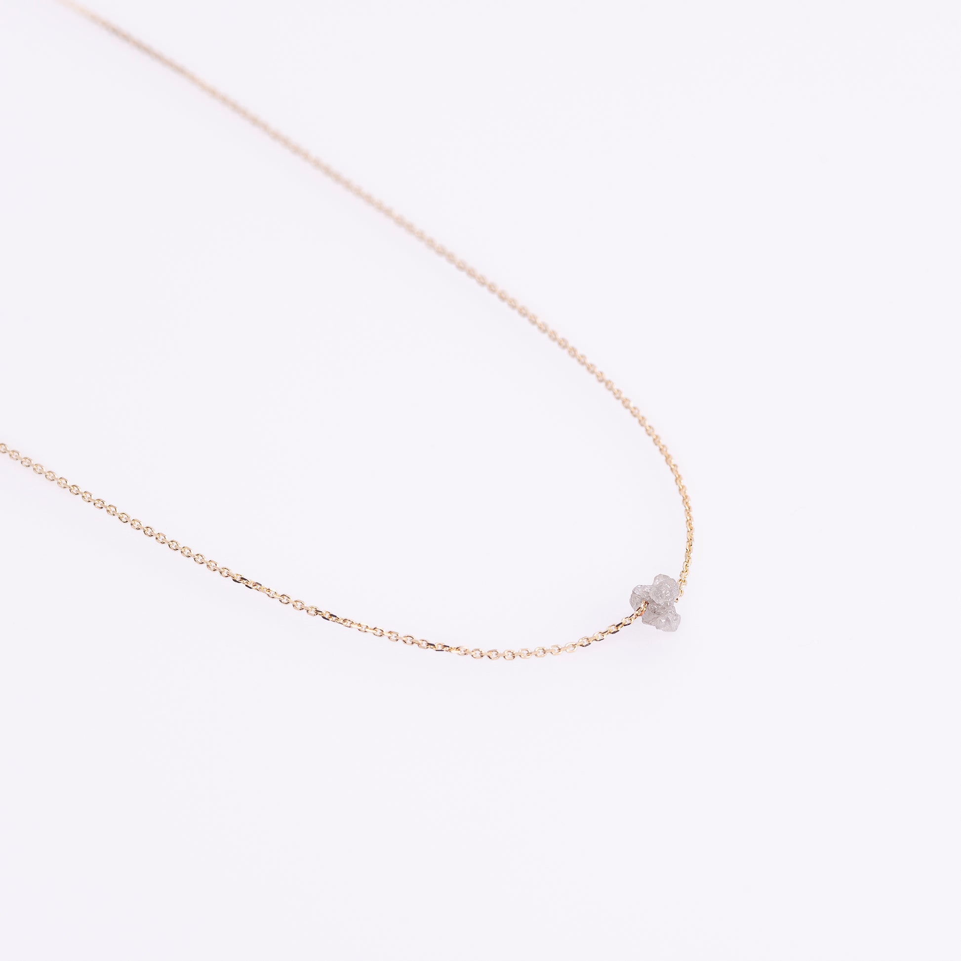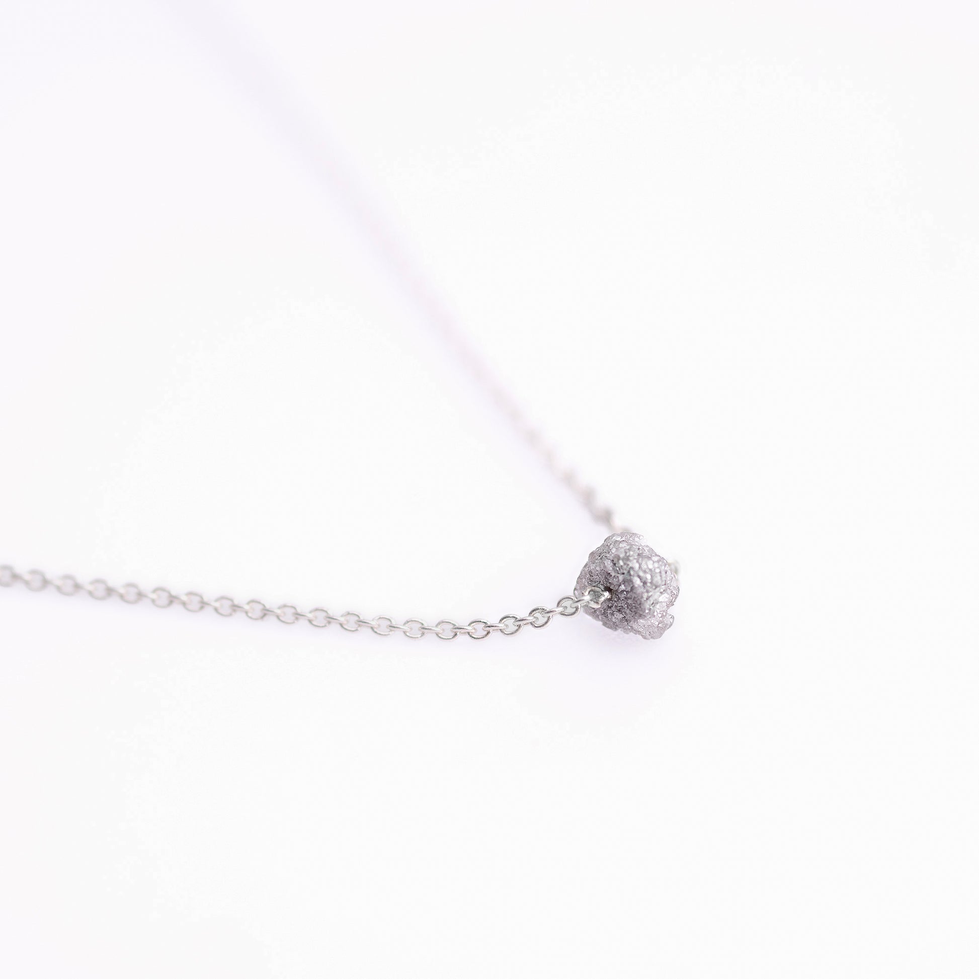 The Rosha necklace, featuring a small raw diamond, symbolizes the hidden beauty that may not be obvious at first glance. The diamond is paired with a delicate silver chain, available in various lengths and colors to complement any outfit. Add a touch of subtle sparkle to your day with this elegant piece.
