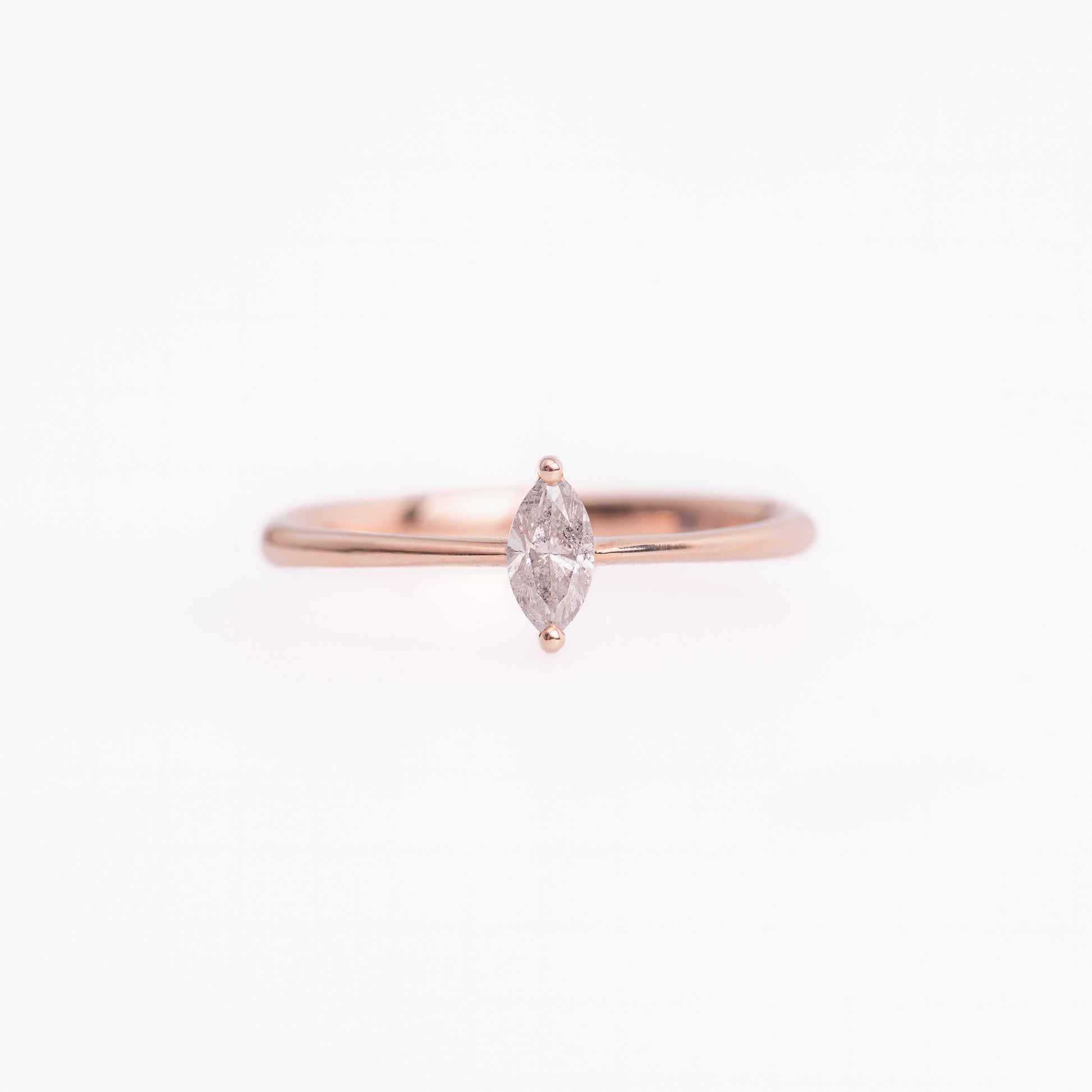 The Sofia ring combines modern elegance with distinctive charm, crafted in rose gold and featuring a navette-cut salt-and-pepper diamond. The unique speckled character of the diamond gives the piece a bold yet refined personality, perfect for those who value individuality.